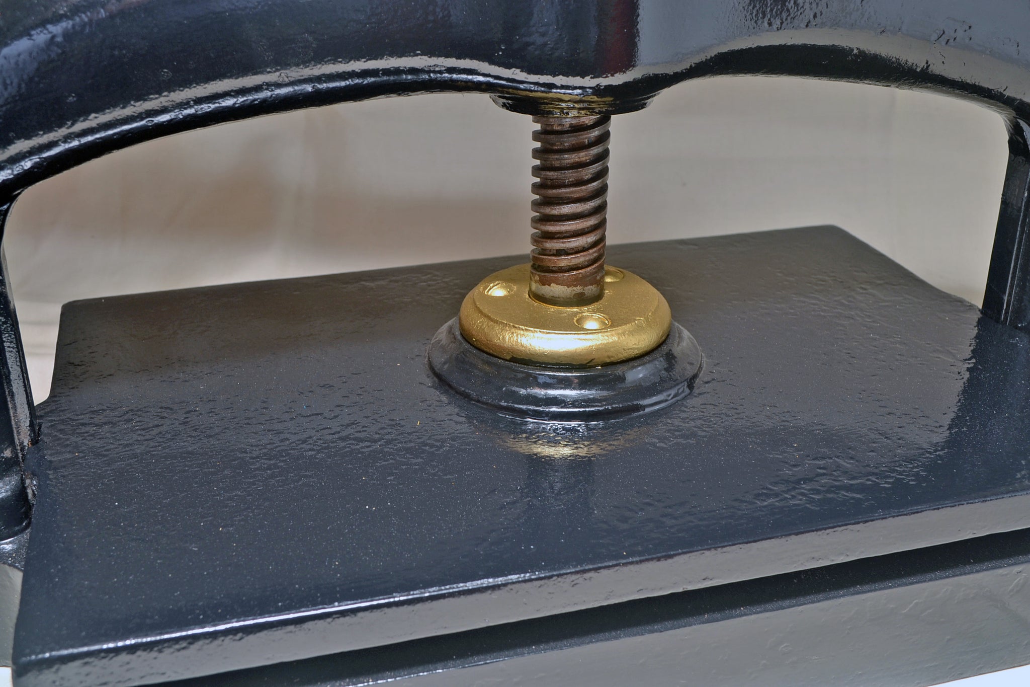 Made of cast iron and repainted in black and gold, this press is very heavy and over the normal limit for courier deliveries. We can negotiate freight costs and delivery options upon purchase. Delivery to West Coast centres and some South Island locations may be made easily but long haul destinations in the South and inter-island locations will require delivery by courier or a freight company. Unfortunately we cannot offer the free delivery option at checkout, so simply process the order and we will refund your freight costs.